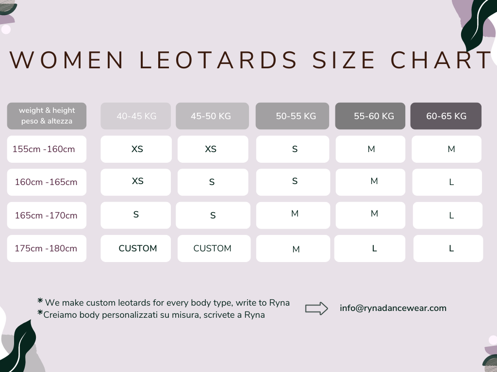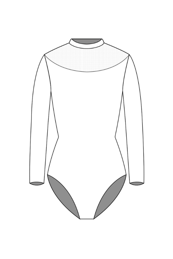 Il body Giovanna è caratterizzato da un colletto sottile che dona un aspetto sofisticato allungando la figura di chi lo indossa. Il suo design permette di aprire le spalle ed evidenziare il movimento delle braccia, inoltre, la trasparenza dell'indistruttibile rete Ryna, scopre le clavicole e, nella parte posteriore, le scapole.
